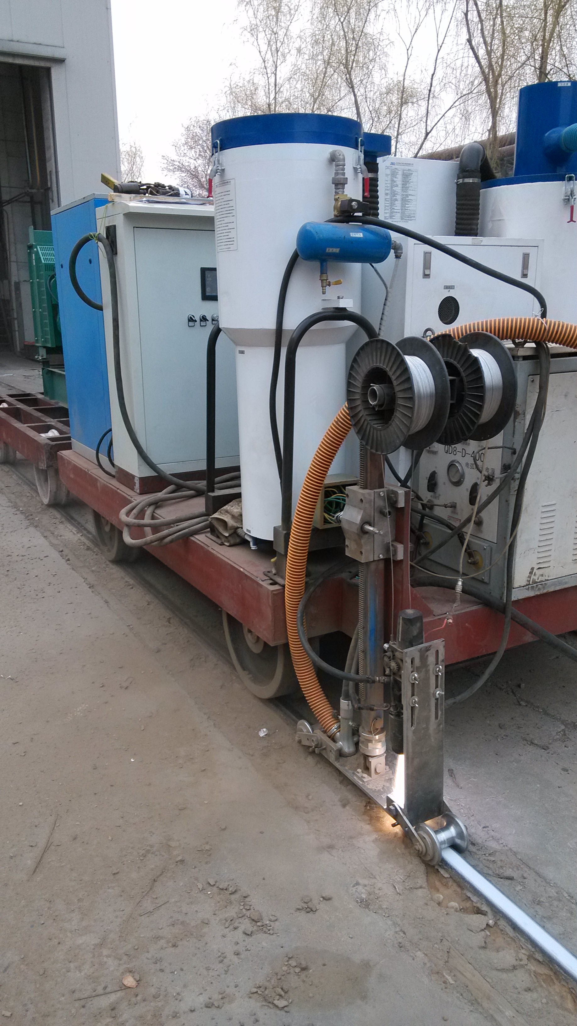 ● 北京聯泰信科無塵噴砂處理鐵道鋼軌             使用JZR-600II型雙槍無塵金久卓爾噴砂機