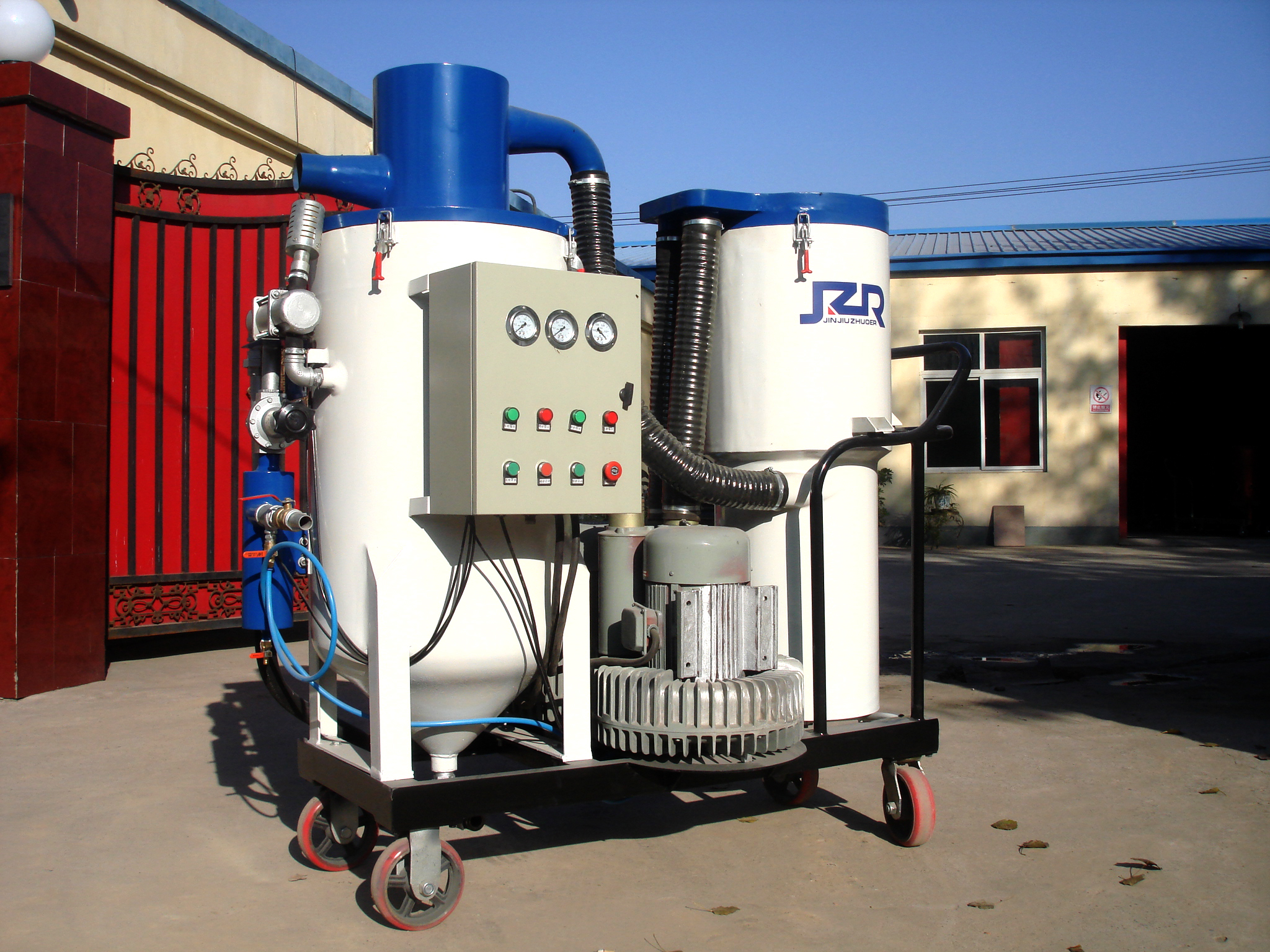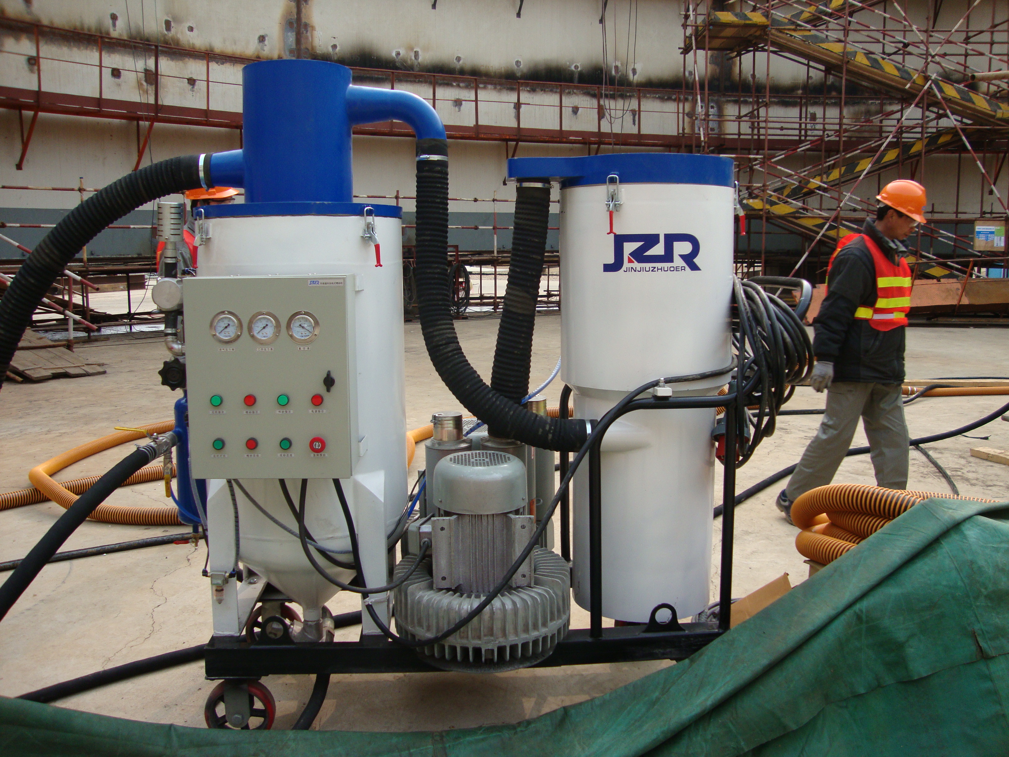 ● 天津億偉公司無塵噴砂處理巨型油罐氣罐  采購2臺JZR-2D型金久卓爾噴砂機