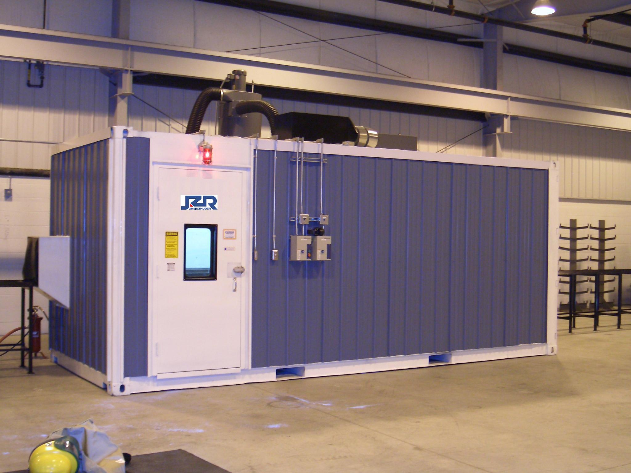 JZR-PSF-YD型噴砂房適用于中型構件、不規則工件、批量處理件表面噴砂清理氧化皮、銹皮、漆皮。廣泛應用于防腐工地、 野外施工現場。是防腐公司、野外施工單位移動噴砂作業理想的環保型表面處理設備。